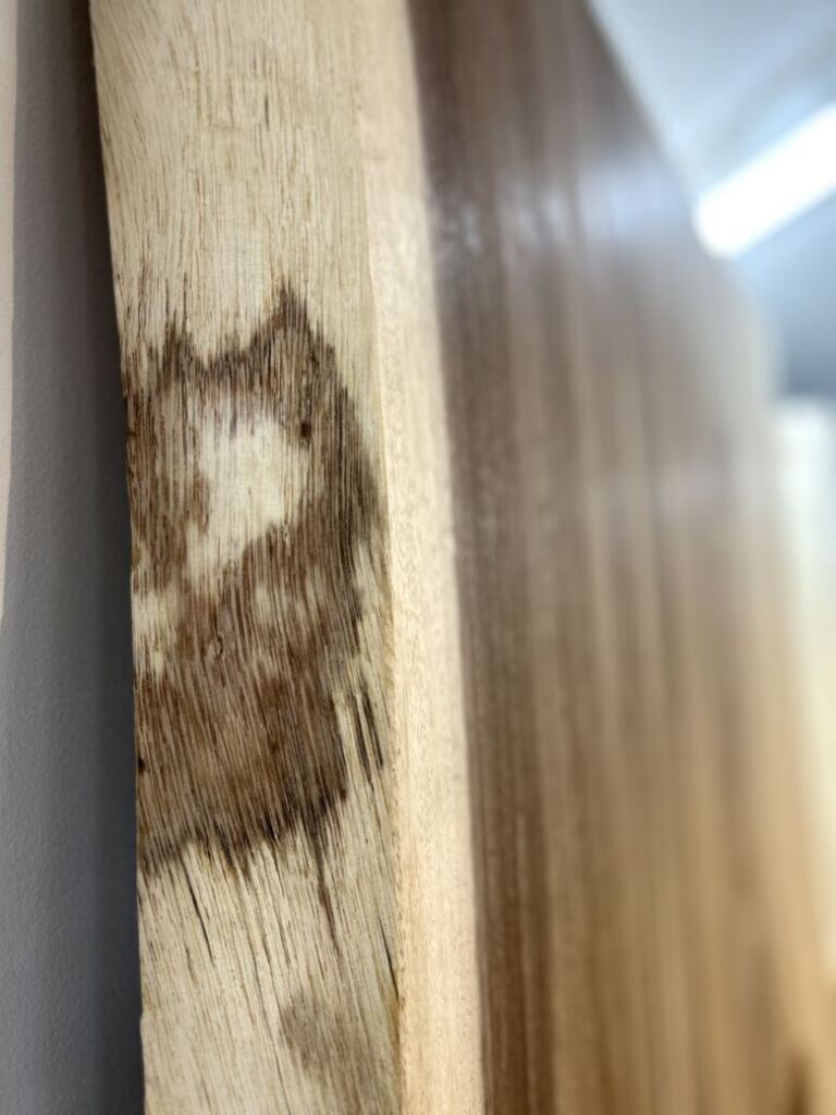 この水で濡らした状態は、オイル塗装やウレタン塗装を施した際の完成イメージに非常に近い状態です。